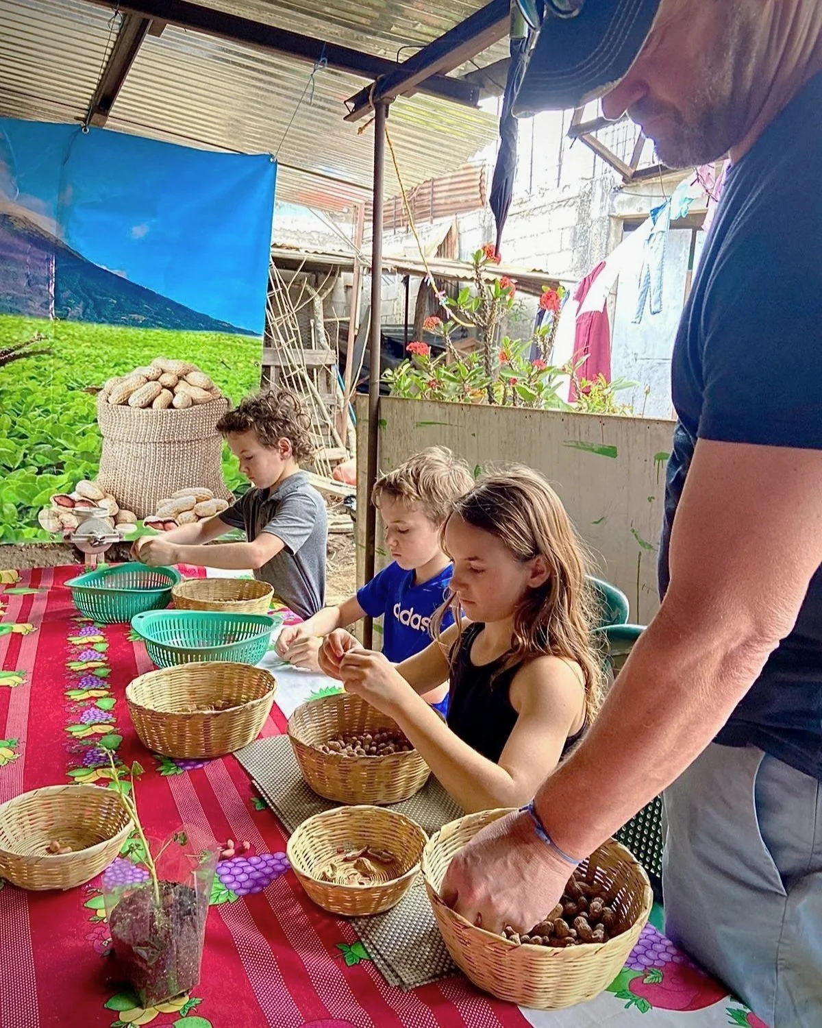 Los visitantes pasarán unas horas con una productora local de maní (en San Miguel Escobar) mientras los guían a través de sus campos en las faldas del Volcán de Agua. Luego en su hogar, les enseñará a preparar su propia mantequilla de maní casera y llevarla en sus maletas.